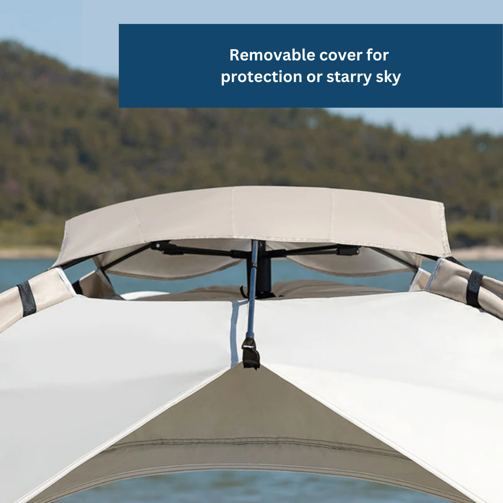 The removable top cover allows you to enjoy the stars on clear nights without having to fully dismantle the tent.