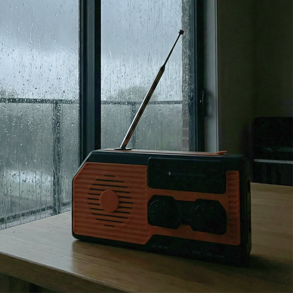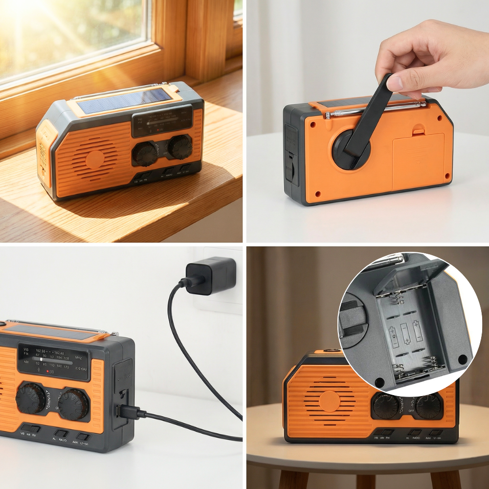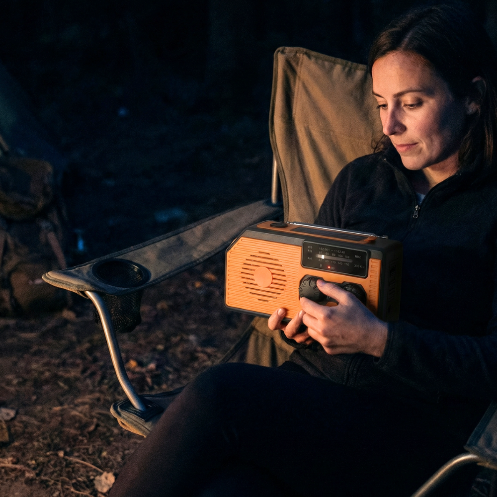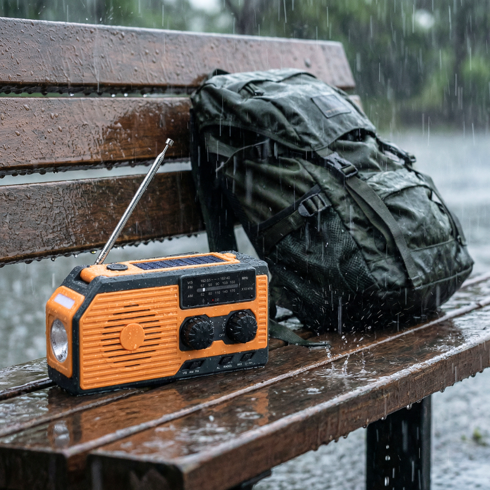 4-in-1 Emergency Radio With Solar Panel, Hand Crank & Power Bank – Blackout & Outdoor
