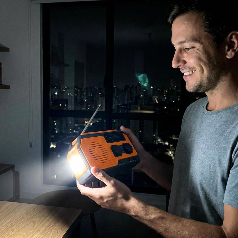 During power outages, natural disasters, or outdoor activities, this device combines radio reception, powerful lighting, an SOS alarm, and mobile charging in a compact, dependable solution.