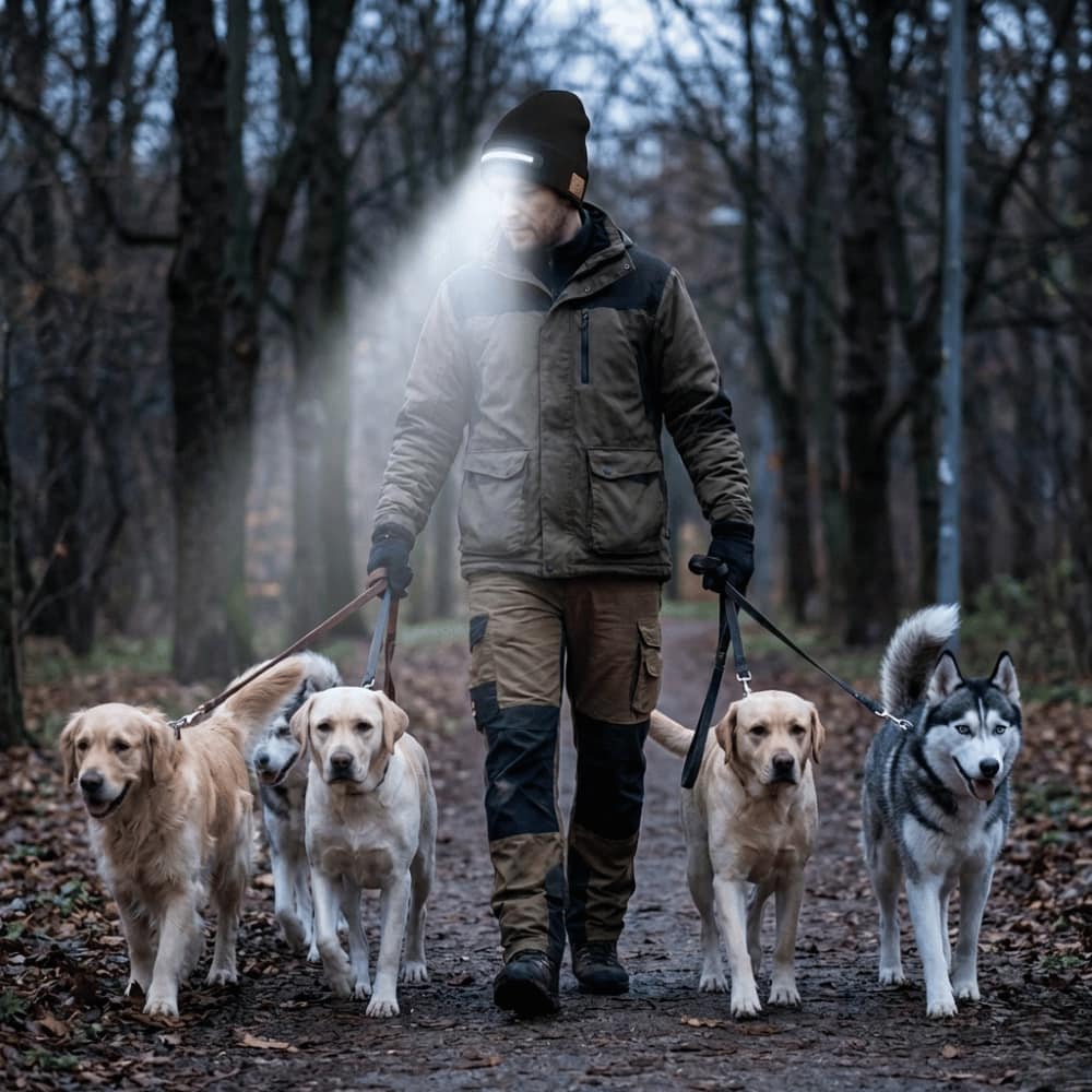 Ideal for runners, hikers, dog walkers, or anyone who wants hands-free light, audio, and warmth on the go.