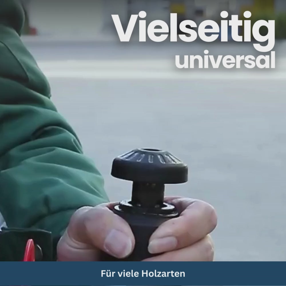 With the EasyWoodSplit, you can split firewood in seconds – without heavy axe swings or risky wedging. The precisely shaped splitting cone applies controlled pressure, bites cleanly into the wood, and splits it with impressive ease.