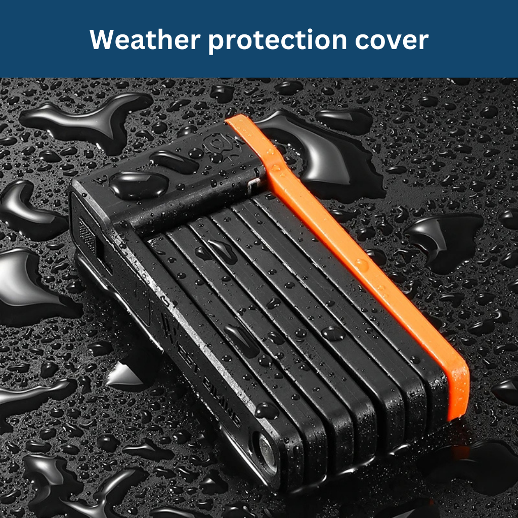 The waterproof and dustproof cover of the Foldie Bike Lock provides additional protection against the elements. This cover ensures that the lock functions effectively even under harsh weather conditions and in dusty environments.