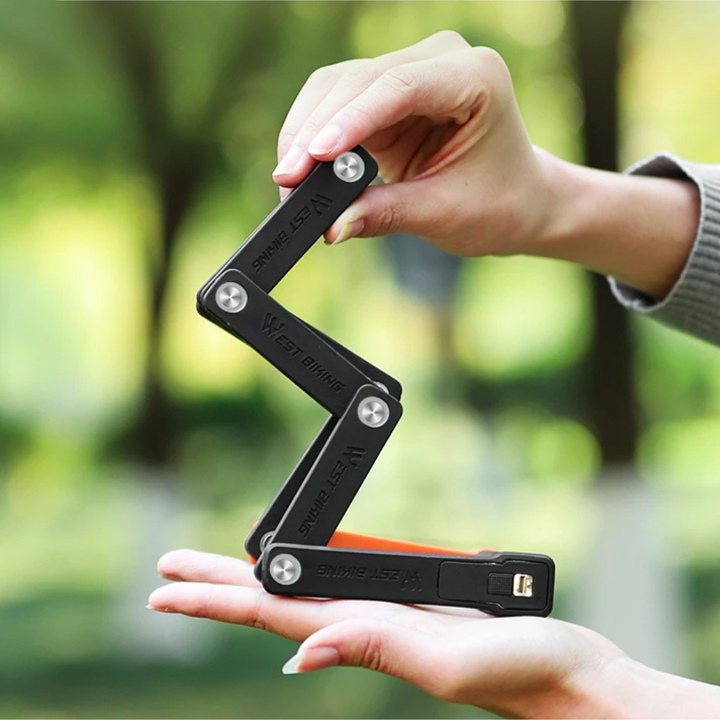 Experience the perfect combination of security and portability with the brand-new Foldie Bike Lock from NaturVibes. This folding lock not only provides robust protection for your bike but is also lightweight and easy to transport.
