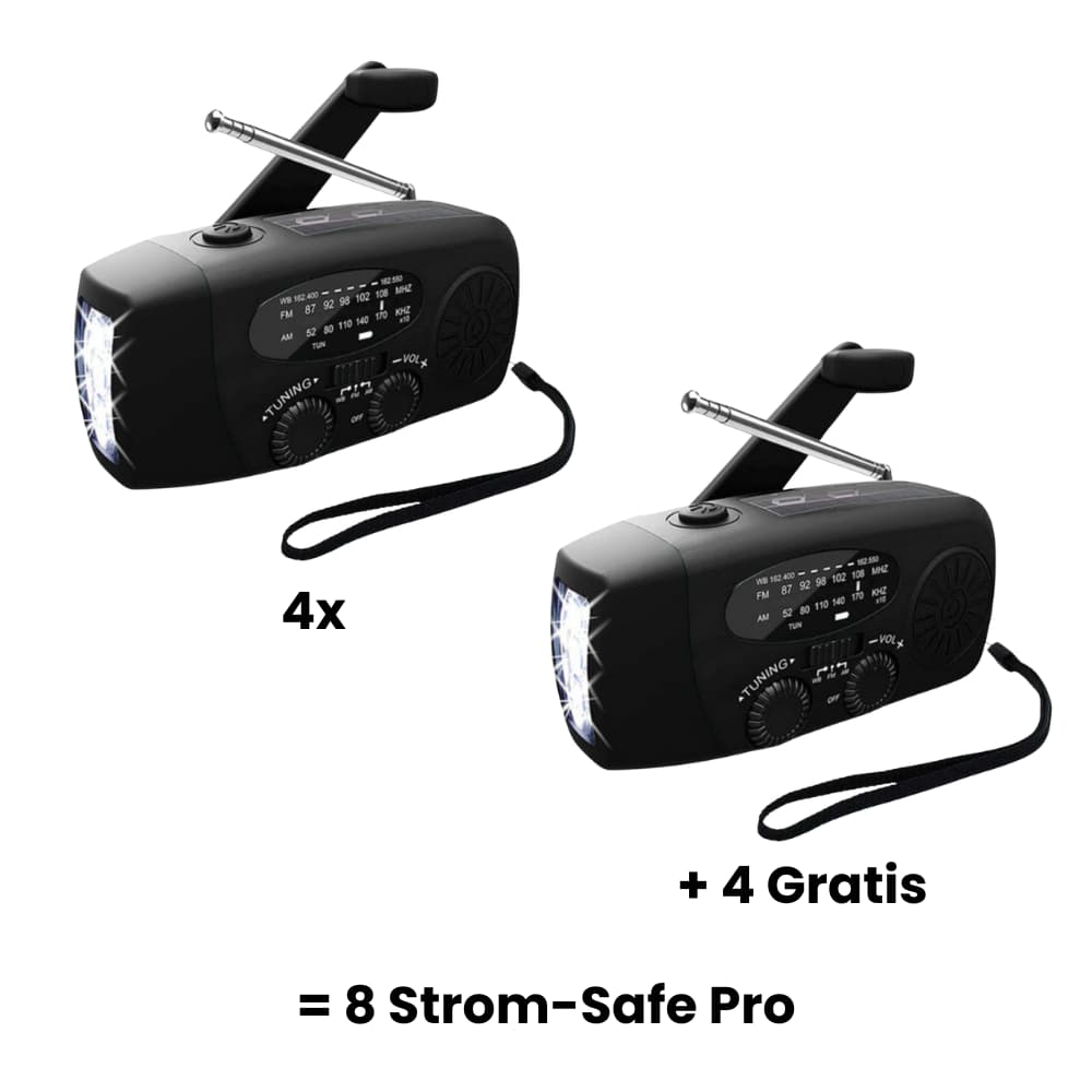 Ja! Der Strom-Safe PRO kann über Solarenergie, Handkurbel oder klassisch per Micro-USB geladen werden. Selbst wenn keine Sonne scheint und kein Stromnetz verfügbar ist, kannst du mit der Kurbel jederzeit Energie erzeugen.