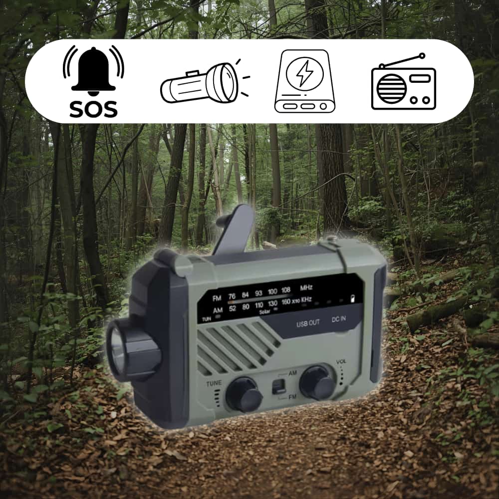 The StormGuard 2000 combines radio, flashlight, power bank, and SOS alarm in one compact device.