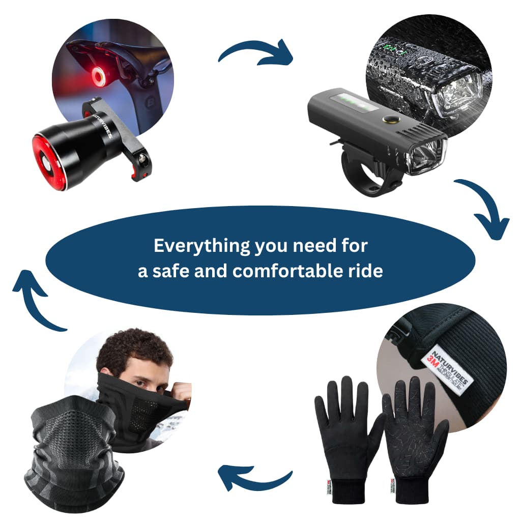 It combines powerful lighting, weatherproof gloves, and a versatile neck gaiter that protects you from wind and weather.