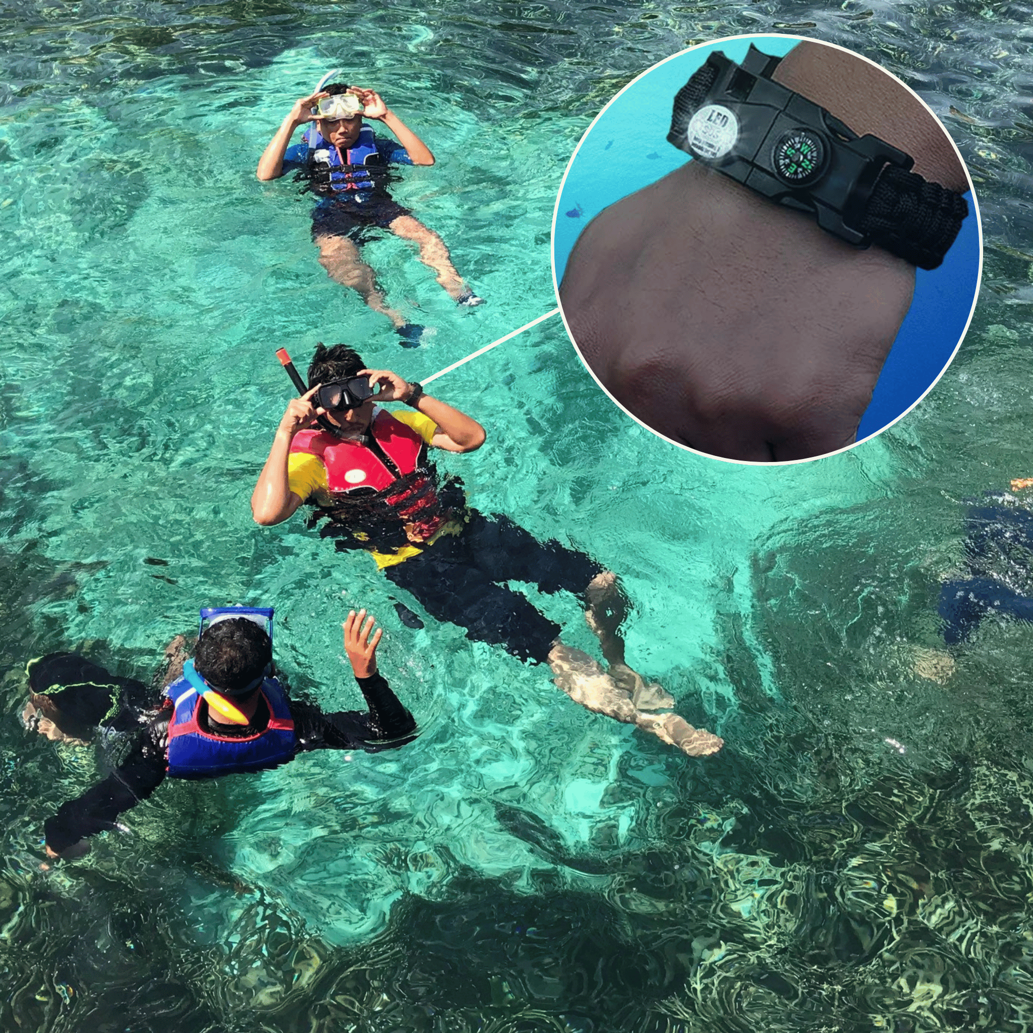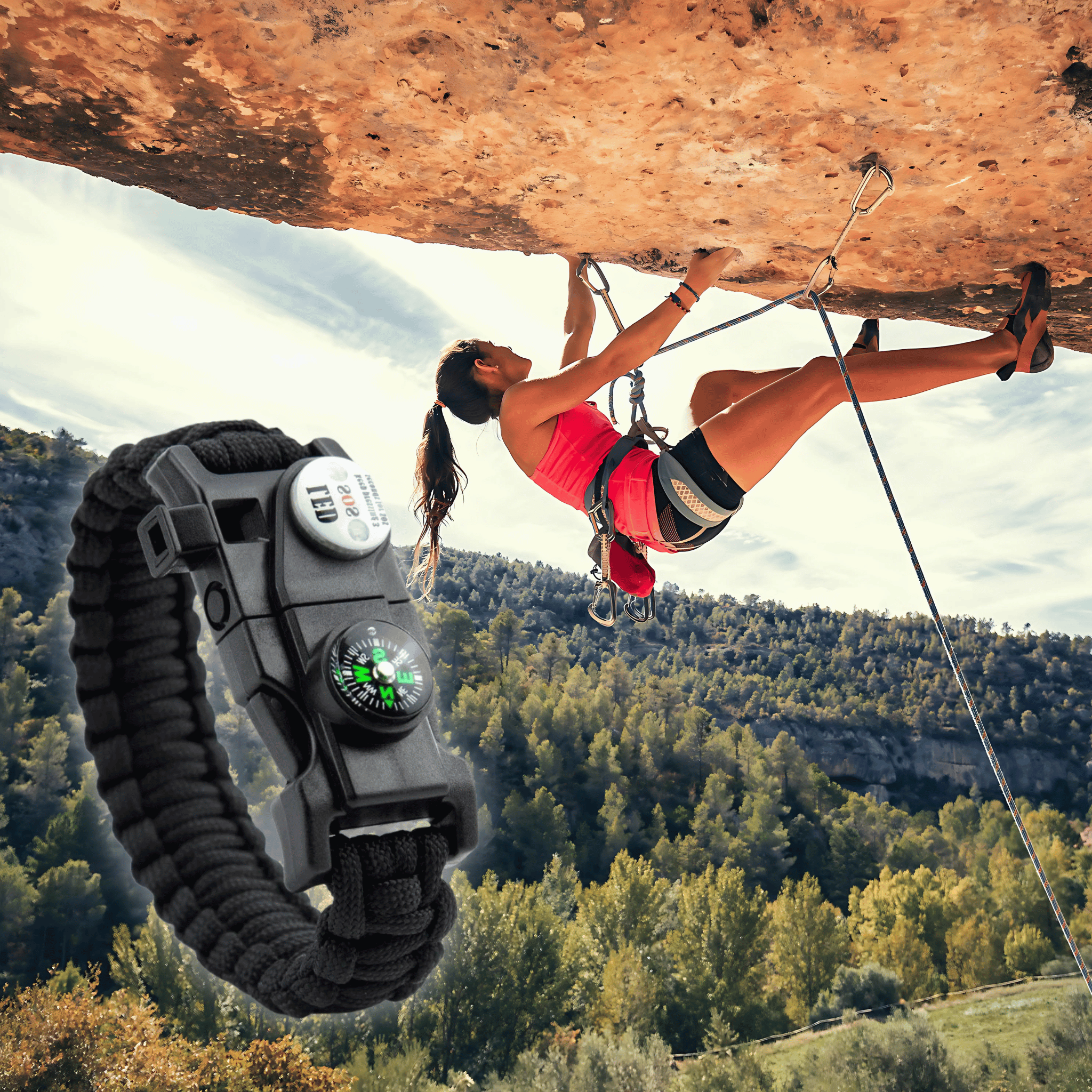 Designed for comfort, the bracelet is adjustable to different wrist sizes and can even attach to backpacks or gear. Made from durable, waterproof materials, it withstands tough outdoor conditions.