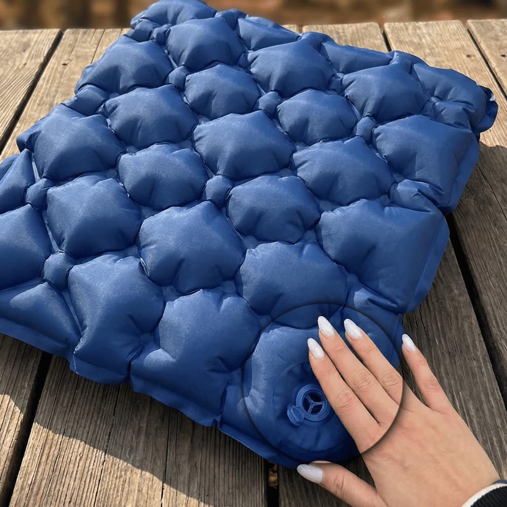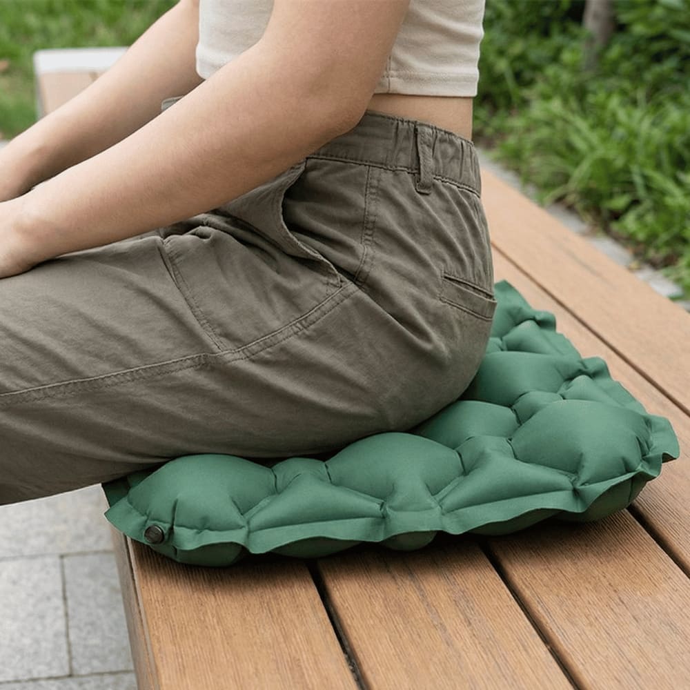 Thanks to the integrated air pump, the cushion is ready in seconds. Simply press lightly on the surface, and it fills with air automatically—no bulky pump or effort required.